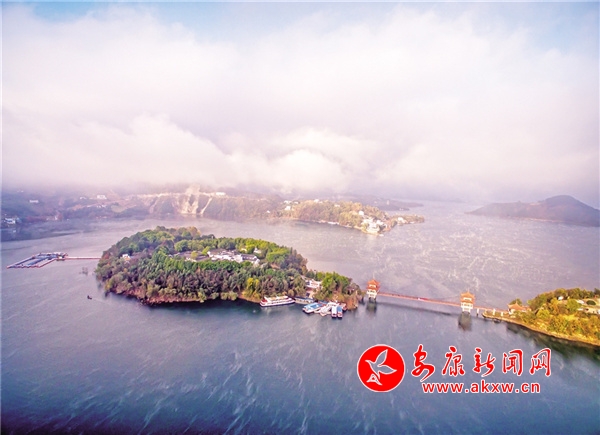 初冬的清晨,瀛湖風(fēng)姿綽約、曼妙無比。起初湖水像是受熱不均的沸水,這里一點,那里一塊冒著熱騰騰的青煙,如絲如縷,在水面上輕盈地飄動、游離、撕扯,如慵懶自在的白云,把天空、湖水襯托得更藍。漸漸地,煙嵐越來越濃,越來越多,像化不開的乳汁,最后整個湖面煙波浩渺,小船和遠山若隱若現(xiàn),似人間童話仙境。這樣的山圍繞著這樣的水,這樣的水倒映著這樣的山,再加上湖中帆影點點,白鷺行行,小島林立,魚群結(jié)對,有種人在畫中游的感覺。深冬,總會落一兩場雪。那雪,極富層次。山下,素雪輕薄覆蓋;山上銀裝素裹,玉潔冰清。湖水則咕嘟咕嘟冒著熱氣,白綠相配,分外醒目,似丹青妙手繪制的山水畫,又似巧手繡娘精繡的刺繡,美輪美奐,惹人愛憐。