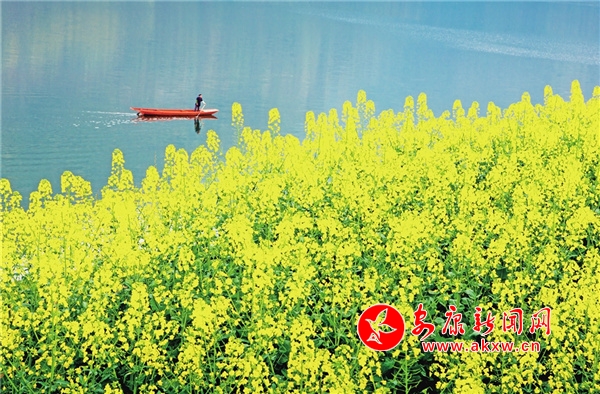 瀛湖的春天,立春很久才姍姍而來。春風(fēng)拂過山間林木,樹木爆芽吐綠。起初是一樹一樹的鵝黃,帶著幾分詩意。沒幾天,便是翡翠般的新綠,煥發(fā)著勃勃的生機。藍天麗日下,一池湖水碧波萬頃,如一面巨大的鏡子鋪展在天地間。頭頂?shù)乃{天白云,四周的紅花綠樹,全都靜臥湖底。魚兒開始產(chǎn)子,孕育后代,來來往往的游船載來四面八方的游客,火了周邊的農(nóng)家樂,鼓了村民的腰包。