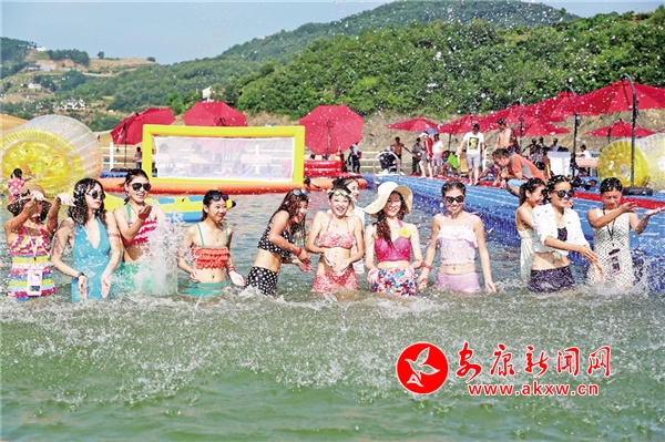 瀛湖的初夏,萬千變化。清晨,山和水還在夢中酣睡,一輪紅日從東面湖的盡頭沐浴而出,爬上山頭,霞光染紅了湖水,染紅了天空,湖面顯得更加清幽。傍晚,落日熔金,給群山鍍了一層金邊。此時,群鳥歸隱,群魚入眠。江風(fēng)攪動湖水,湖面波光瀲滟,明麗動人。晚歸的漁民搖著一葉扁舟在寂靜的湖面上飄蕩,成為畫中最美的風(fēng)景。習(xí)習(xí)涼風(fēng)也吹散了白日的暑熱,舒適愜意,是休閑避暑的好去處。若遇雨天,天地間扯起絲絲銀線,水天一色,如煙如霧,籠罩在瀛湖上空。那若有若無輕煙一樣的雨霧輕盈地飄蕩在湖面上、群山間,翠屏山莊上的亭臺水榭、湖心碧螺島上的螺峰塔,全都沐浴在水蒙蒙的輕紗中,如夢似幻?!拔魅角鞍橈w,桃花流水鱖魚肥。青箬笠,綠蓑衣,斜風(fēng)細雨不須歸。”此時,湖里的魚兒成群結(jié)隊地游出水面透氣,正是釣魚的最佳時機,湖邊不少垂釣愛好者正興致勃勃地冒雨釣魚,完全不顧雨已打濕了衣服。湖中,一葉葉漁舟和游船在雨中漫游,幽幽絲竹之聲從游船中飄出,像游走在煙雨迷蒙的江南水鄉(xiāng)。
