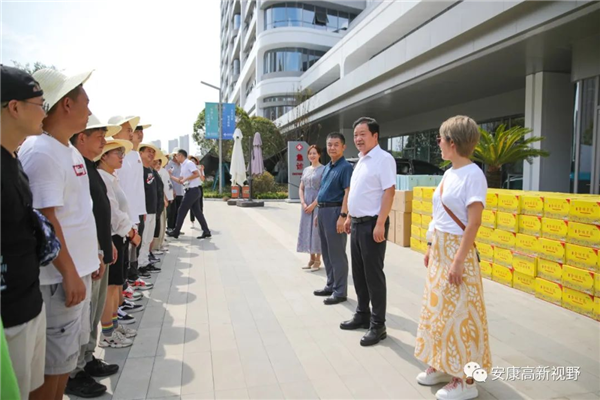 7月14日,市委常委、安康高新區(qū)黨工委書記羅武俠帶領(lǐng)相關(guān)部門負(fù)責(zé)人看望慰問(wèn)防疫、水電、環(huán)衛(wèi)等一線工作人員,為他們送去防暑降溫物品,向他們?yōu)槌鞘邪l(fā)展和保障民生作出的辛勤貢獻(xiàn)給予高度肯定、表示衷心感謝。