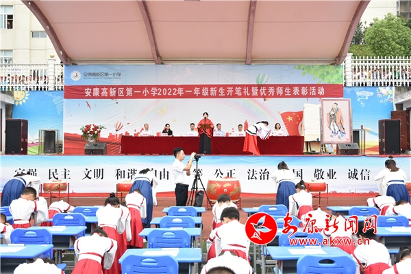 本網(wǎng)訊(通訊員 李曉波)為進一步強化學(xué)校未成年人建設(shè),幫助廣大兒童“扣好人生第一??圩印?,9月16日上午,安康高新區(qū)第一小學(xué)舉行“喜迎二十大 一起向未來”一年級開筆禮暨優(yōu)秀師生表彰大會。