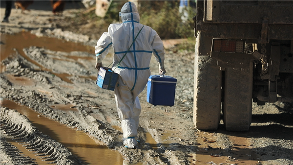 “遇到最大的困難是時(shí)常都是路況不好,路上常常塵土飛揚(yáng)、霧天視線不清,尤其是遇到下雨天的陡坡泥濘路面最擔(dān)心,擔(dān)心路不好走的危險(xiǎn),更擔(dān)心耽誤了測(cè)核酸的進(jìn)程。有時(shí)候要反復(fù)試幾十遍,才好不容易上去,這樣就會(huì)耽擱采樣時(shí)間,我們內(nèi)心也很焦急,但是沒(méi)辦法,因?yàn)樯铰凡缓米?,路途常常都是幾十公里,就這樣每天幾乎都是從天明到黑夜。”