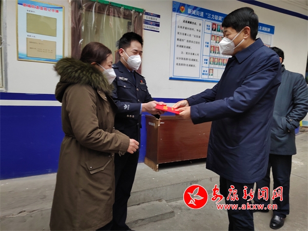 范永斌深入到市國(guó)安局、漢濱區(qū)新城司法所、漢濱法院高新法庭、漢濱區(qū)檢察院看望全體干警。每到一處,范永斌都與他們親切握手,向他們送上市委、市政府的節(jié)日祝福,并轉(zhuǎn)達(dá)市委書記武文罡的誠(chéng)摯問候,對(duì)過(guò)去一年政法干警辛勤工作取得的成績(jī)給予肯定。