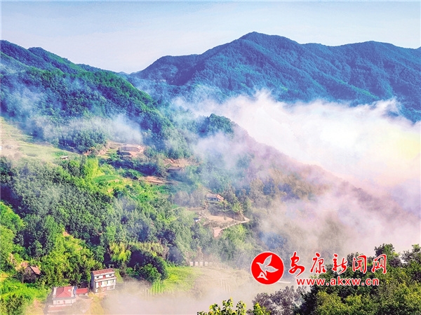 霧在山崖,白茫茫,棉花般鋪開(kāi),太陽(yáng)高高掛在云海之上,青峰若隱若現(xiàn),車鉆云穿霧,人飄然若仙,撲哧驚飛的鳥(niǎo)兒,在樹(shù)梢上撒歡。