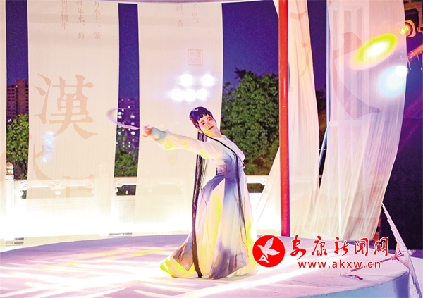 還未走近安瀾樓,就被一首琵琶曲改編的絲竹樂曲《春江花月夜》吸引,流暢多變的節(jié)奏,巧妙細(xì)膩的配器,絲絲入扣的演奏,仿佛將觀眾帶入那個(gè)月夜春江的迷人景色。環(huán)繞安瀾樓四周,畫家楊炳昌筆下的金州八景,仿佛一秒穿越古今,勝景徐徐、浮現(xiàn)腦際。