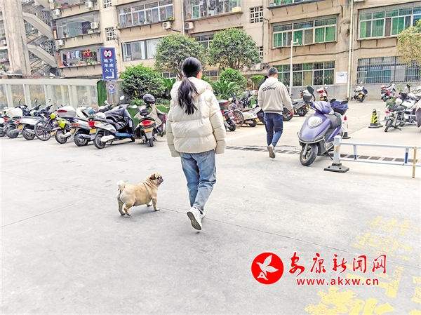 3月16日,安康中心城區(qū)某小區(qū)內(nèi)有市民遛狗不牽繩。鄭時根 攝