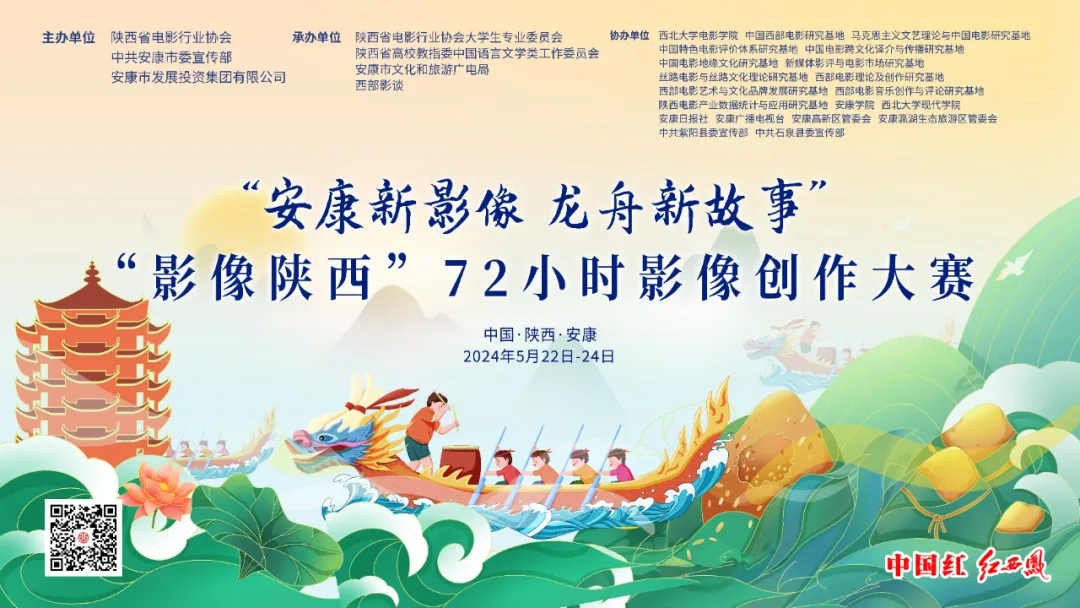“安康新影像·龍舟新故事”“影像陜西”72小時影像創(chuàng)作大賽由陜西省電影行業(yè)協(xié)會、中共安康市委宣傳部、安康市發(fā)展投資集團有限公司主辦,陜西省電影行業(yè)協(xié)會大學生專業(yè)委員會、陜西省高校教指委中國語言文學類工作委員會、安康市文化和旅游廣電局、西部影談承辦。通過主題限時拍攝、分享交流、展映評獎等活動,匯集新興影視創(chuàng)作力量,以安康為創(chuàng)作空間,不限制創(chuàng)作題材風格,鼓勵青年影人以年輕、多元的視角在72小時內(nèi)進行短片創(chuàng)作,從節(jié)慶活動、自然風光、現(xiàn)代都市、人文生活、美食文化等角度,為安康文旅、龍舟文化提供影像表達的另一種可能。