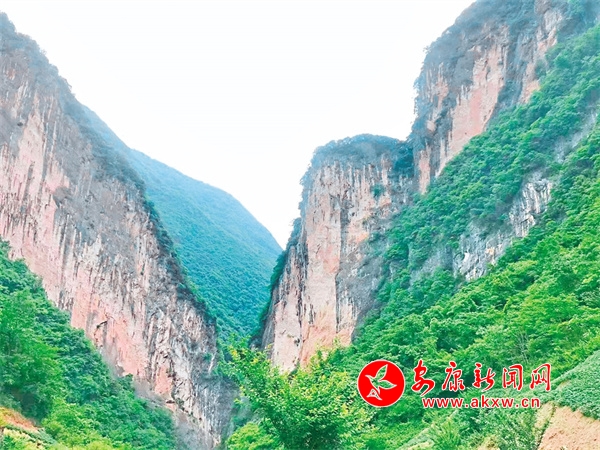 白巖坡就是大巴山的杰作,地質(zhì)斷層形成的兩座山峰如同兩扇大門(mén),擋在通往巴山的路途上,展示著什么是“一夫當(dāng)關(guān),萬(wàn)夫莫開(kāi)”。歲月的風(fēng)霜雪雨、日曬夜露將山體侵染成灰白相間的印跡,像極了牛角上的紋路,生命力極強(qiáng)的花草樹(shù)木在懸崖峭壁上瘋狂生長(zhǎng),一條不知趣的小溪硬是從兩山夾峙中拼命擠過(guò),切出一道深澗,絮絮叨叨著“水可穿石”。從巖石里、溶洞中、草木根沁出的泉水,爭(zhēng)先恐后地竄進(jìn)小溪,歡歌嬉戲。停車(chē)駐足,一股清新空氣不打招呼地沁入心脾,全身舒坦。抬頭仰望,一線天里寫(xiě)滿花草樹(shù)木、藍(lán)天白云、風(fēng)花雪月,讓人心曠神怡,仿佛到了世外桃源。