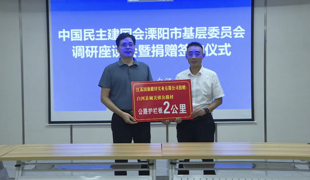 在座談會上,民建溧陽基層委員會向白河慈善協(xié)會捐贈5萬元幫扶資金,會員企業(yè)江蘇國強(qiáng)鍍鋅實(shí)業(yè)有限公司為城關(guān)鎮(zhèn)公路村捐贈了全長2公里的公路護(hù)欄板,會員企業(yè)溧陽暢享互聯(lián)網(wǎng)科技有限公司與白河縣電子商務(wù)公共服務(wù)中心簽訂了戰(zhàn)略合作協(xié)議。