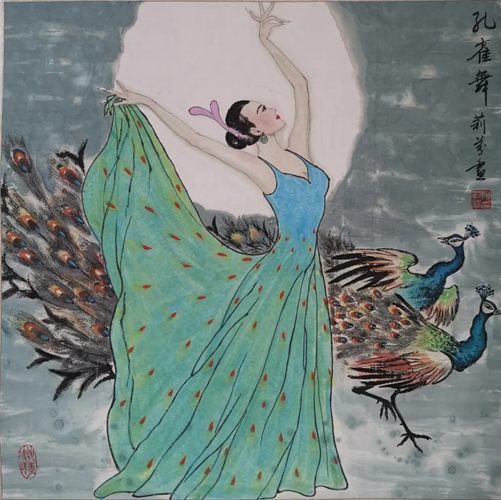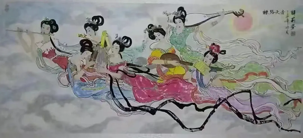 解大姐是陜北人,性格開(kāi)朗、直率,說(shuō)話中間或帶出一些濃重的陜北口音。雖說(shuō)她主業(yè)從于政界,但她微笑的背后卻潛藏著不可掩飾的藝術(shù)天賦,揮發(fā)著令人奪目的藝術(shù)才情。繁雜的政務(wù)工作之余,她創(chuàng)作不輟,堅(jiān)持不懈,居然在多個(gè)藝術(shù)門類收獲頗豐,好評(píng)連連。寫(xiě)小說(shuō),她寫(xiě)出幾十萬(wàn)字的長(zhǎng)篇出版發(fā)行;寫(xiě)劇本,竟拍成了電影予以公映;學(xué)國(guó)畫(huà),亦讓藝術(shù)界的大咖贊口不絕。我雖不才,空有浮名,但深耕藝界多年,對(duì)于其中的好賴還能分出一二。我感到,一個(gè)人的人品和藝品基本一致,解大姐的藝術(shù),是扎根于她熟悉的陜北大地的藝術(shù),是生長(zhǎng)在山峁峁上經(jīng)歷風(fēng)霜雨雪的藝術(shù),就像那陜北倔強(qiáng)的疙瘩柳,散發(fā)著對(duì)土地對(duì)生活的親近和熱情,對(duì)人生價(jià)值實(shí)現(xiàn)的不屈和追求。看到她的國(guó)畫(huà)新作,有陜北剪紙等民間藝術(shù)的滋養(yǎng)和影響,真切而樸實(shí)。她的飛天人物系列,泥古而不落窠臼,使我想到疙瘩柳條隨風(fēng)擺動(dòng)的婀娜風(fēng)姿,溫溫潤(rùn)潤(rùn),令人遐思和向往;她的花鳥(niǎo)畫(huà)作,使我想到陜北山野一片蒼茫之間,一朵兩朵盛開(kāi)的山丹丹花,嬌艷得令人不忍觸手;她的山水畫(huà)作,又猶如陜北山原上嫩黃的棗花,洋溢著撲面而來(lái)的質(zhì)樸、清新和率真之氣。