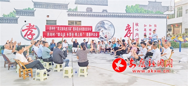 在今年的每一次道德評(píng)議會(huì)上,月河村干部和鄉(xiāng)賢能人都積極宣講村莊發(fā)展規(guī)劃以及孝善行為的重要性,宣講團(tuán)成員詳細(xì)解讀孝義文化,帶動(dòng)村民踴躍參與“五美庭院”創(chuàng)建。在此過(guò)程中,“說(shuō)論亮”道德評(píng)議制度有效運(yùn)行;“群眾說(shuō)”讓大家暢所欲言,把村里的大小事擺到臺(tái)面;“鄉(xiāng)賢論”借助鄉(xiāng)賢的智慧與威望分析問(wèn)題、化解矛盾;“榜上亮”則讓好與壞一目了然,便于群眾監(jiān)督。特別是,為激勵(lì)村民見(jiàn)賢思齊,學(xué)典型、爭(zhēng)先進(jìn)、樹(shù)文明,月河村利用孝義文化長(zhǎng)廊、宣傳欄、道德講堂等載體,把評(píng)選出來(lái)的道德典型事跡“上榜、上墻”,形成示范引領(lǐng)效應(yīng),讓良好道德品質(zhì)看得見(jiàn)、摸得著,進(jìn)一步激發(fā)村民的主人翁意識(shí),讓移風(fēng)易俗的觀(guān)念深入人心。