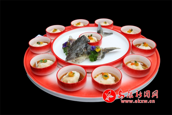 “陜南淡水魚餐飲暨‘贛義鑫杯’烹飪技能大賽”是張顯峰走出去學習交流檢驗自己菜品研究成果的平臺。在準備本次比賽菜品時,他選用了紫陽縣最好的食材“富硒鱘魚”、花鰱魚,土黑豬五花肉及羊肚菌等蔬菜,精心制作了兩道菜品,第一道菜品是紫陽茶香宴中的主菜——茶香鱘龍。這道菜擺盤高雅,肉質(zhì)細膩,口味鮮美,茶香與淡水魚的完美結(jié)合,讓人仿佛置身于清新的茶山之間,品味著大自然的饋贈。