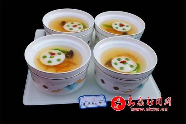第二道菜品則是傳統(tǒng)與創(chuàng)新并蓄的蓮蓬養(yǎng)生湯。這道菜品主菜形似蓮蓬,不僅外觀精致高雅,而且湯鮮味美,營養(yǎng)豐富,每一口都蘊含著廚師對食材的精心挑選和對烹飪技藝的極致追求。張顯峰最終憑借其精湛的廚藝和創(chuàng)新的菜品脫穎而出,榮獲一等獎,并被授予“陜南烹飪名師”的榮譽稱號。這不僅是對他個人技藝的肯定,更是對紫府壹號陜南文化主題餐廳及整個紫陽美食文化的極高贊譽。更是對紫陽美食文化的一次有力推廣。