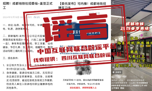 謠言:成都地鐵招聘“提前預(yù)定名額”?濟南地鐵校園招聘有“真題”?