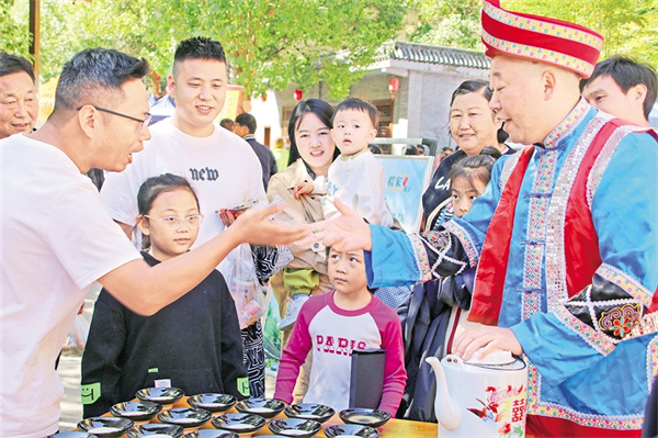 來自臺灣的游客阿偉第一次體驗這“驚心動魄”的待客禮,雙手接碗,仰頭飲盡,再用力將碗口朝下摔向青石板?!斑旬敗币宦暣囗懀善臑R,周圍頓時響起一片喝彩?!八ね氲臅r候,心里真痛快!”阿偉笑著說。