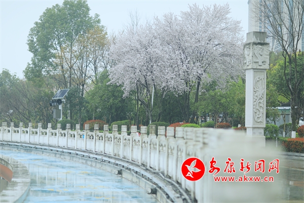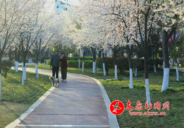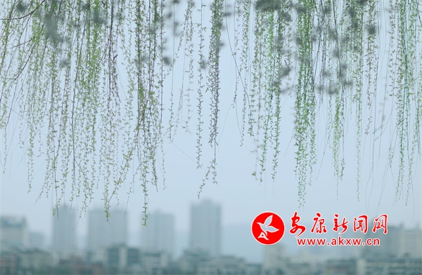 花朵盛開(kāi),柳樹(shù)垂絲,遠(yuǎn)處的城市建筑若隱若現(xiàn)。人們?cè)诮吢?、休憩,享受著春日里的美好時(shí)光。此時(shí)的畫面將現(xiàn)代文明與自然生態(tài)完美融合,讓人感受到城市中一抹特有的清新與寧?kù)o。
