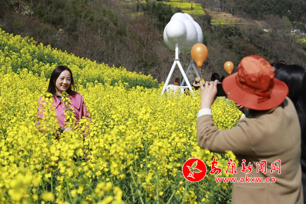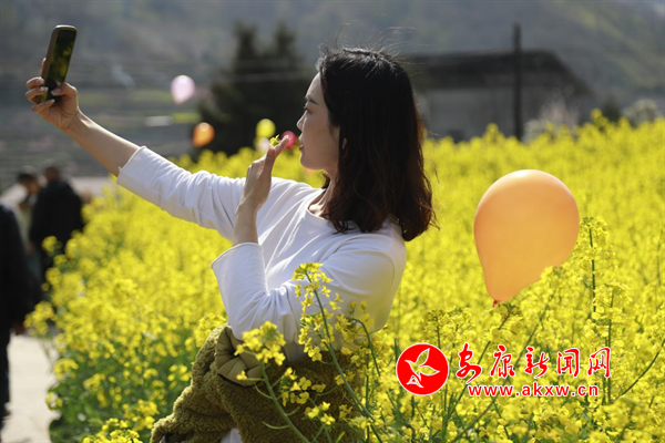 陽(yáng)春三月,嵐皋縣城關(guān)鎮(zhèn)水田村1000畝繁茂的油菜花海,為大地迅速披上一層金色的盛裝,吸引眾多的游客紛紛前來觀光旅游,分享陽(yáng)春三月、鳥語(yǔ)花香的鄉(xiāng)間美麗景色。(攝影 廖霖)?