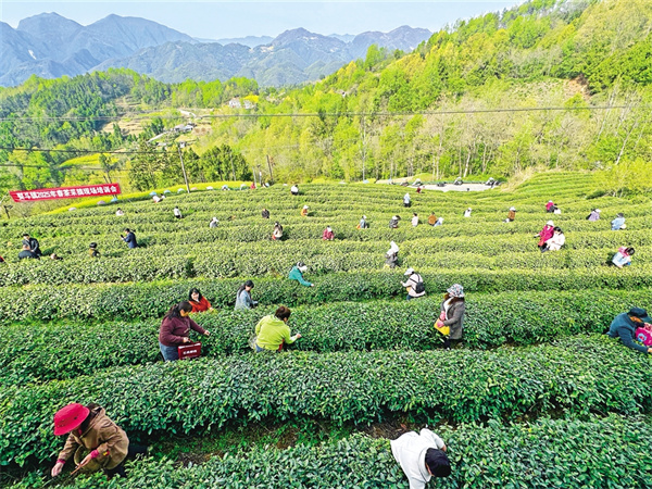 “開園嘍!”春茶采摘在嘹亮的號子聲中拉開帷幕,茶農(nóng)們頭戴遮陽帽、身挎竹簍,穿梭于青翠茶壟間,指尖在嫩芽間游走,陣陣茶葉清香伴隨著歡聲笑語回蕩山間。