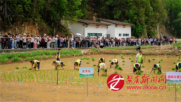 10點(diǎn)50分,插秧比賽正式開(kāi)始,只見(jiàn)寨溝村、龍泉村、漁灣村、湯坪村四支隊(duì)伍在水田中依次排開(kāi)。 隨著清脆的哨響,四支插秧隊(duì)伍迅速進(jìn)入狀態(tài),水田瞬間化作激烈的賽場(chǎng)。彎腰俯身,左手攥緊秧苗,右手分秧、插秧,一株株嫩綠的秧苗被精準(zhǔn)插入田中,泥水飛濺間,選手們你追我趕,汗水與歡笑交織,將傳統(tǒng)農(nóng)事活動(dòng)演繹成了一場(chǎng)精彩絕倫的視覺(jué)盛宴。