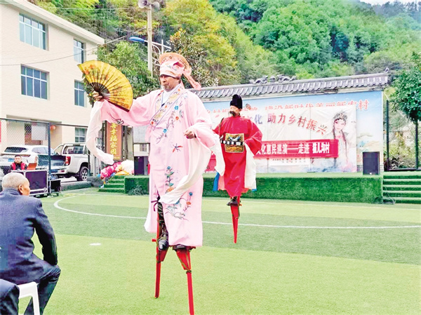 在五峰村,村支部書記羅仁春告訴記者,2023年村委會(huì)牽頭成立了五峰村文化民俗文藝協(xié)會(huì),陸續(xù)加入的48名會(huì)員涵蓋老中青三代,既有傳承高蹺絕技的老人,也有主動(dòng)學(xué)習(xí)弦子腔的年青一代。今年32歲的村民小梅加入?yún)f(xié)會(huì)后,一改往日下班后悶在家中的狀態(tài),每天下午吃完飯都會(huì)下樓和新認(rèn)識(shí)的姐妹載歌載舞,很快就成為舞蹈隊(duì)的主力?!耙郧安恢牢覀兇迳线€有文藝協(xié)會(huì),自從村上干部告訴我后,我就趕緊加入了這個(gè)小團(tuán)體,既鍛煉了身體,又愉悅了心情,生活幸福感越來(lái)越強(qiáng)烈。”身著舞蹈服的小梅身姿婀娜,水袖飛揚(yáng)間,明媚的笑容如花一樣燦爛。