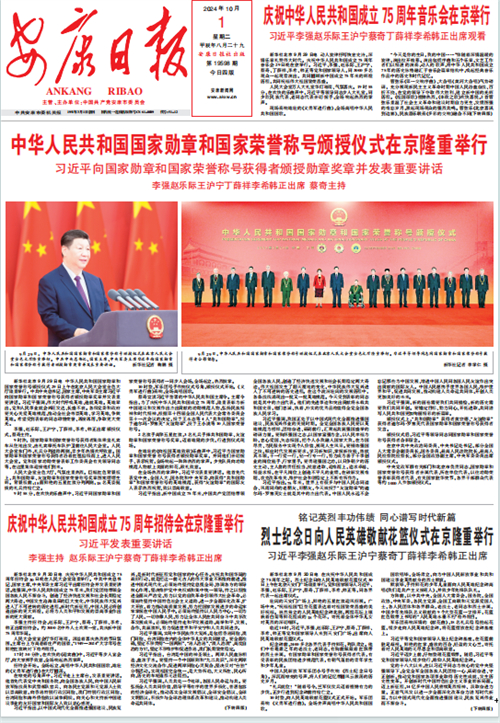 (2024年10月1日安康日?qǐng)?bào)01版“中華人民共和國(guó)國(guó)家勛章和國(guó)家榮譽(yù)稱號(hào)頒授儀式在京隆重舉行”)