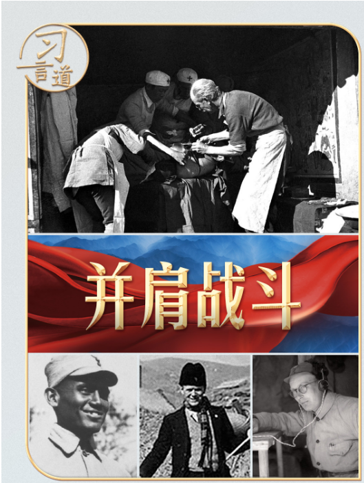 印度醫(yī)生柯棣華、法國醫(yī)生貝熙葉、德國人約翰·拉貝、丹麥人辛德貝格、英國人林邁可、國際主義戰(zhàn)士漢斯·希伯、蘇聯(lián)飛行大隊(duì)長庫里申科、美國“飛虎隊(duì)”......他們的事跡,習(xí)近平總書記曾多次動(dòng)情講述。總書記還在國內(nèi)外重要場(chǎng)合為曾幫助和支持中國抗戰(zhàn)的國際友人頒獎(jiǎng),向他們致敬。