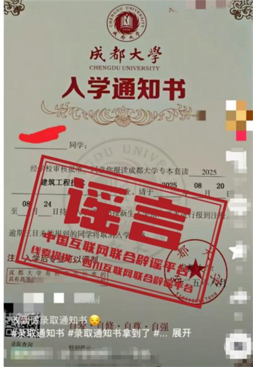 教育部多次提醒,部分機(jī)構(gòu)和個(gè)人打著普通高等學(xué)歷教育幌子,實(shí)際卻為自考助學(xué)、網(wǎng)絡(luò)教育等其他教育形式,或進(jìn)行虛假宣傳。如未通過高考招生錄取獲得正式通知書,無法注冊普通高校正式學(xué)籍,也無法取得普通高等學(xué)校學(xué)歷證書??忌凹议L應(yīng)通過正規(guī)渠道核驗(yàn)錄取信息,嚴(yán)格保護(hù)個(gè)人信息,防止被不法分子利用。(來源:四川互聯(lián)網(wǎng)舉報(bào)辟謠平臺、成都網(wǎng)絡(luò)辟謠)