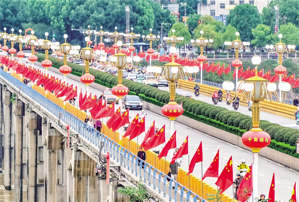 9月25日,我市市政部門對漢江一橋進行了裝扮,以迎接即將到來的國慶節(jié)。?