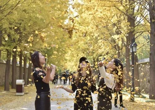 校園的銀杏道上