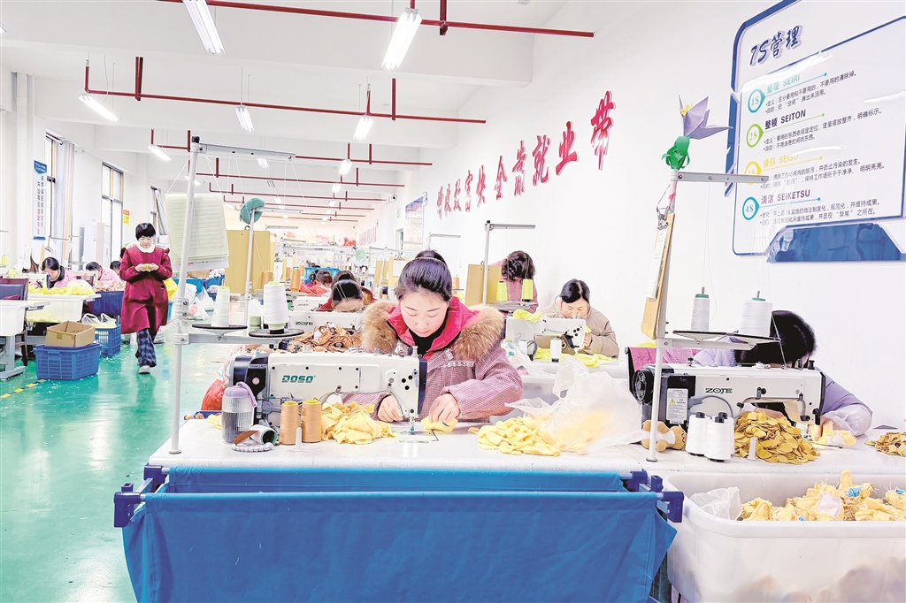 這些承載著安康溫度的毛絨玩具,不僅走進了北京冬奧會、杭州亞運會的賽場,更遠銷80多個國家和地區(qū),讓群眾在家門口就業(yè),實現(xiàn)掙錢顧家“兩不誤”。