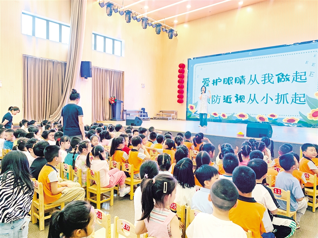 今年6月6日是全國(guó)第30個(gè)“愛(ài)眼日”。在愛(ài)眼日來(lái)臨之際,6月5日下午,市婦幼保健院兒童保健科醫(yī)生陳興芳走進(jìn)安康市高新區(qū)第六幼兒園,為大班幼兒及老師帶來(lái)近視防控知識(shí)講座。陳興芳以眼睛的謎語(yǔ)開(kāi)場(chǎng),用通俗易懂的語(yǔ)言向孩子們介紹了眼睛的結(jié)構(gòu)和功能,并通過(guò)生動(dòng)的科普向小朋友們介紹了如何正確用眼、保護(hù)視力以及手衛(wèi)生的方法。通過(guò)此次活動(dòng),不僅讓孩子們了解了眼睛的重要性,更提高了孩子們愛(ài)護(hù)眼睛的意識(shí)。(鄒春艷 攝)