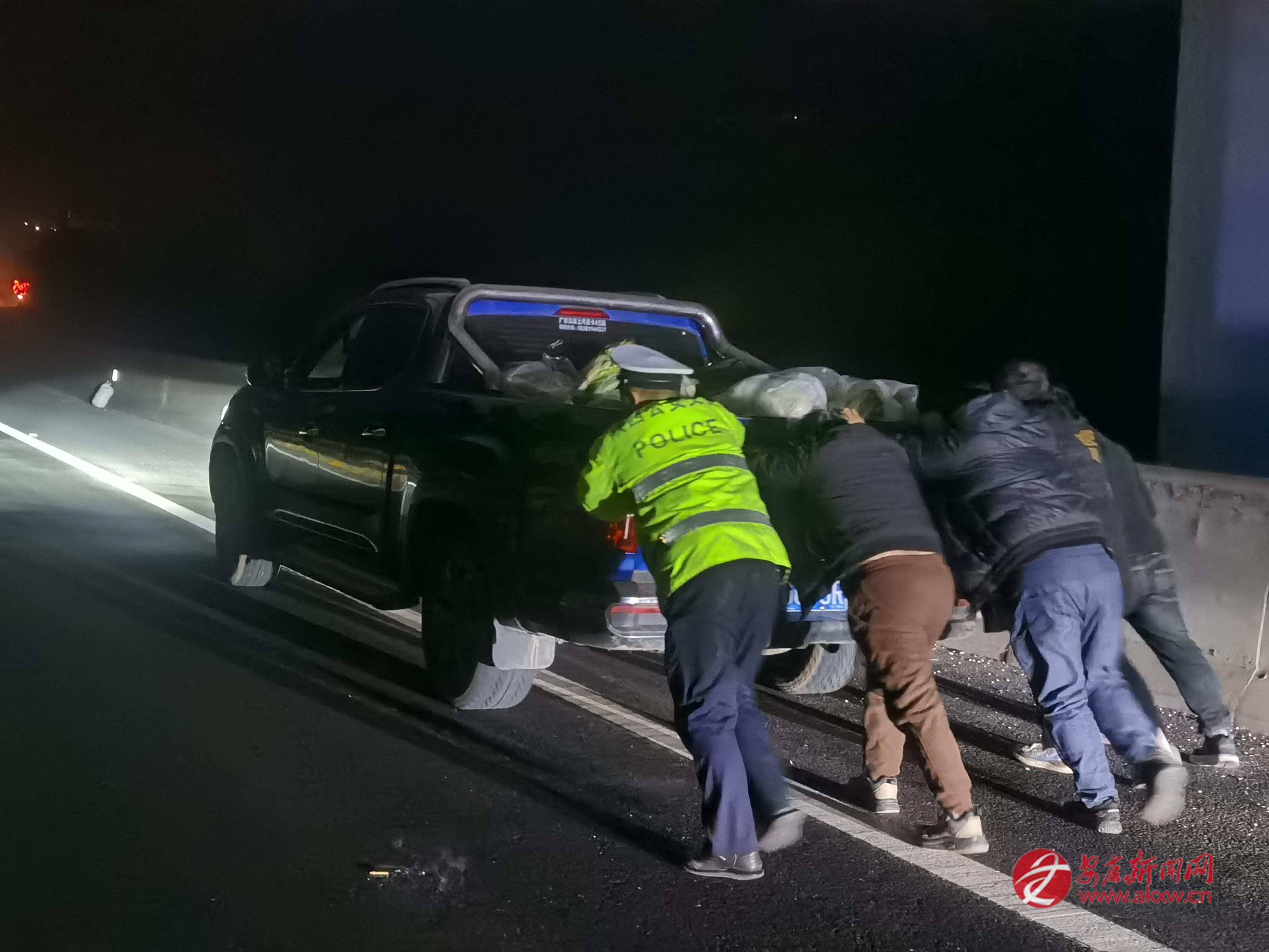 春運(yùn)路上的安全守護(hù):安十執(zhí)勤大隊(duì)深夜徒手推車排險(xiǎn)保暢通