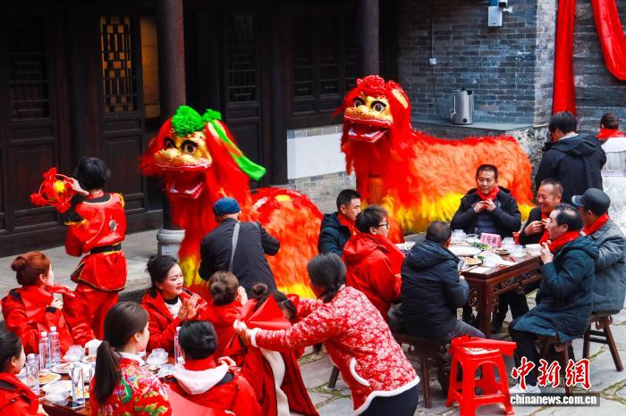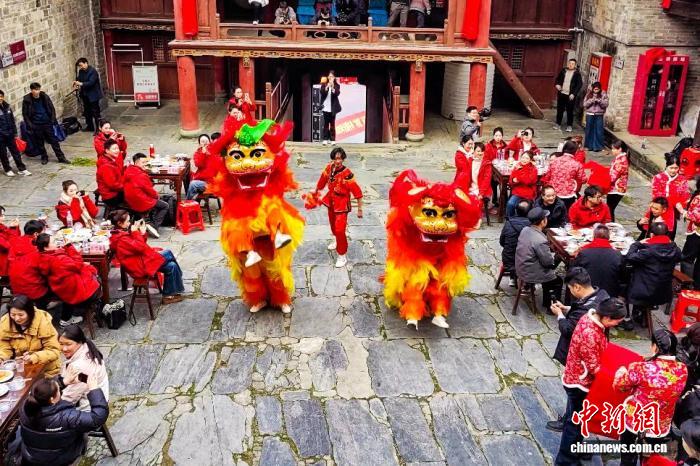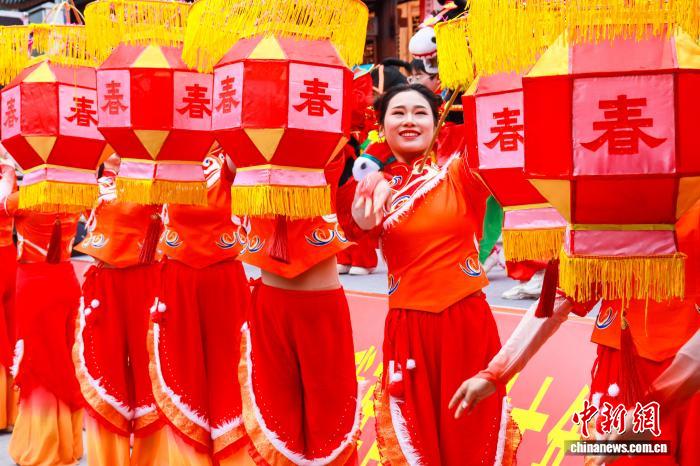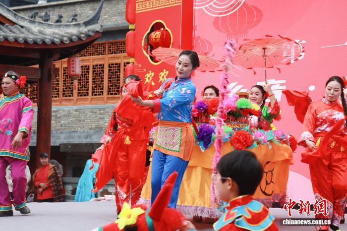 2月4日,全國“村晚”示范展示點(diǎn)活動暨旬陽市“我在古鎮(zhèn)過大年”文旅活動在陜西安康旬陽市蜀河鎮(zhèn)啟動?;顒泳o扣“古鎮(zhèn)年味”元素,融合漢江航運(yùn)文化、鄉(xiāng)村振興等內(nèi)容,以村歌聯(lián)唱、戲曲薈萃、農(nóng)民走秀、農(nóng)產(chǎn)品展銷等形式,營造出了濃厚的春節(jié)氛圍。圖為活動現(xiàn)場。 張昊 攝