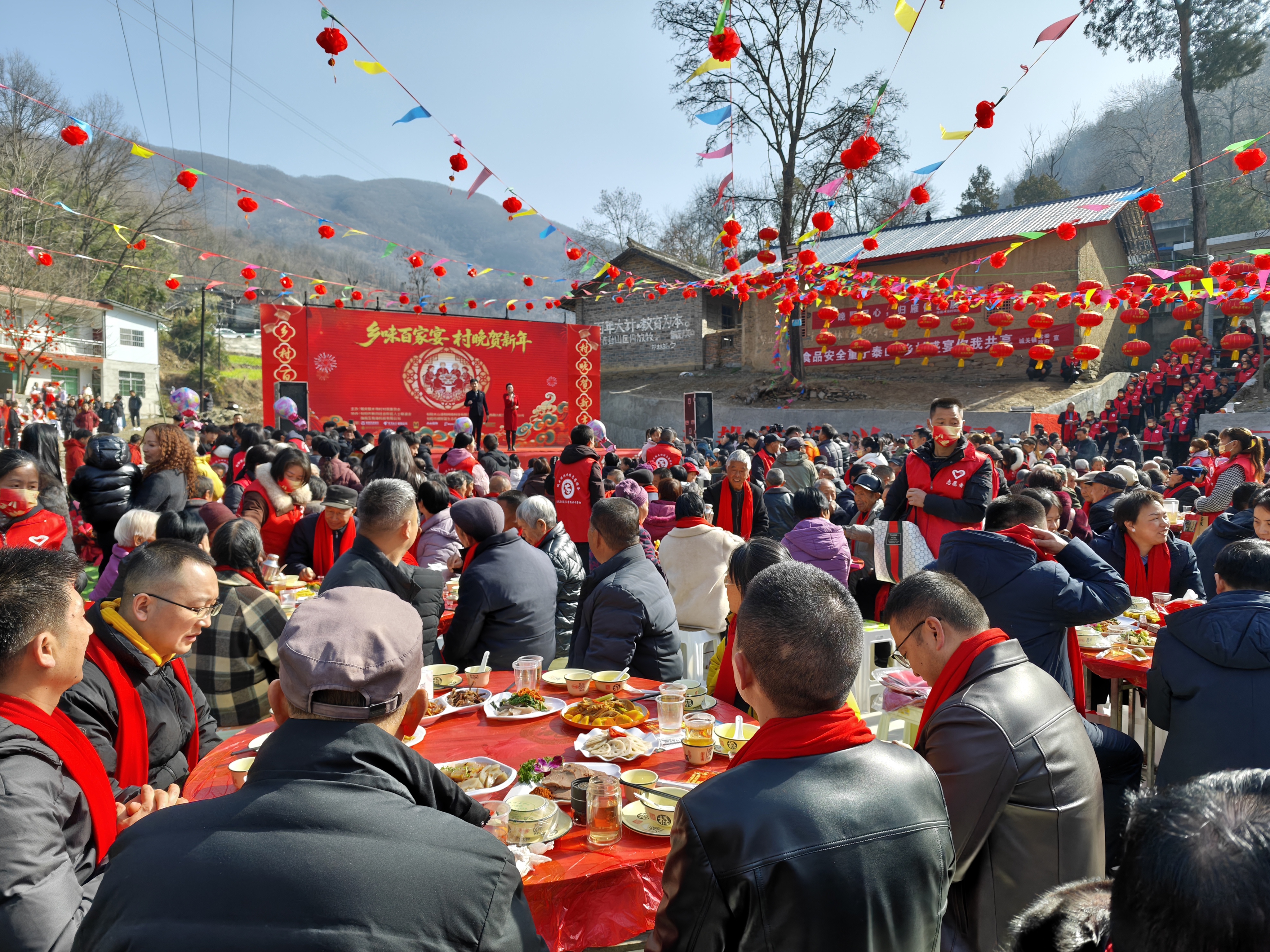 旬陽市舉行“鄉(xiāng)味百家宴 村晚賀新年”活動。 牛華 攝
