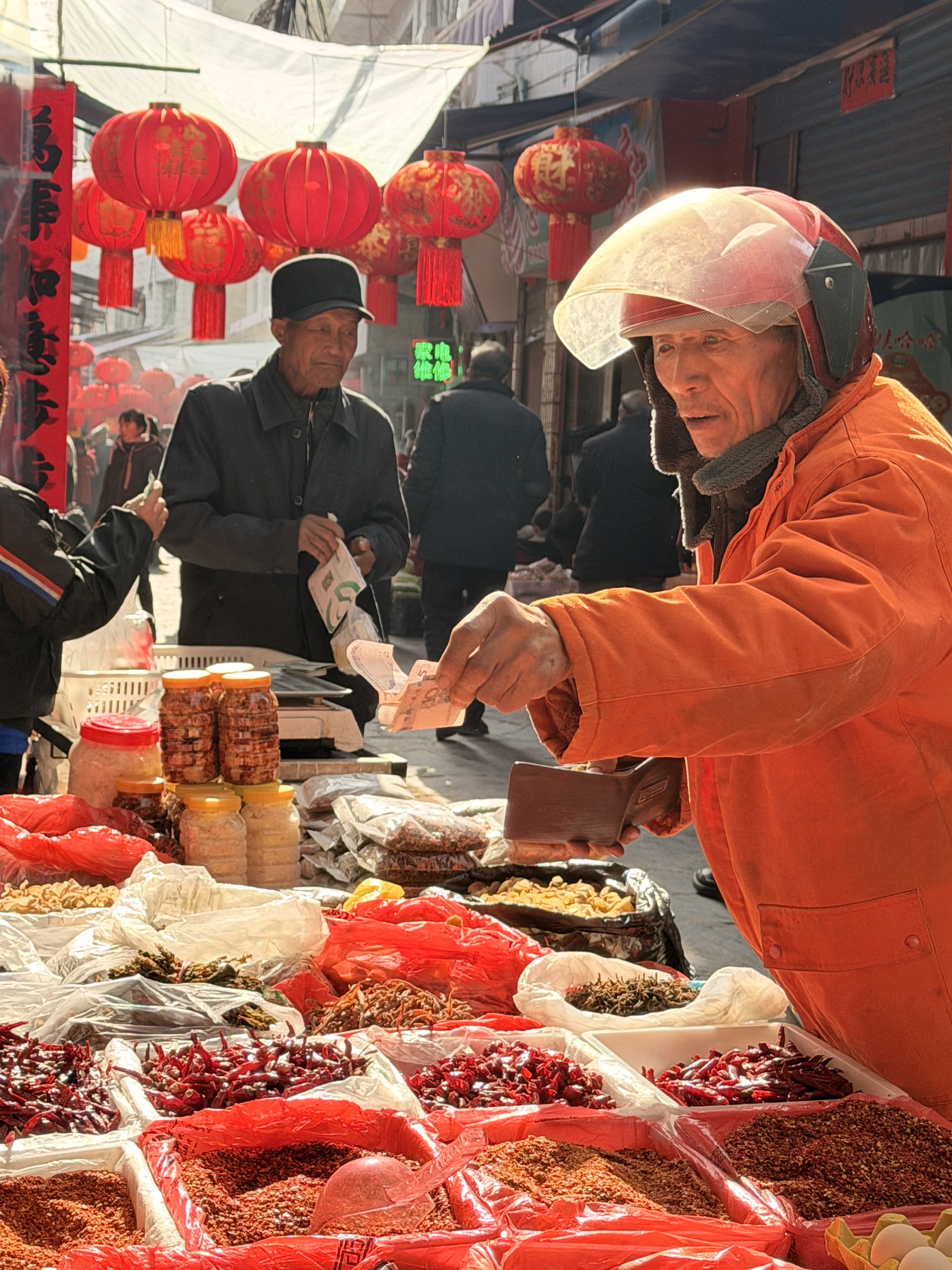 在紫陽縣蒿坪鎮(zhèn)集市,居民正在采購年貨。 陳軍 攝
