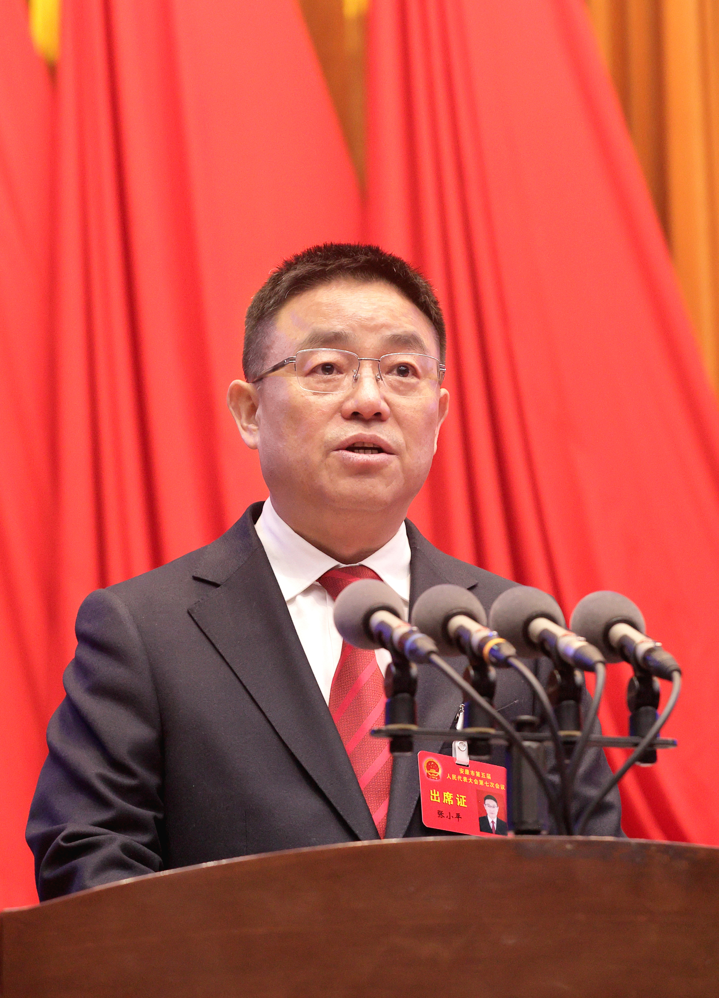 代市長(zhǎng)張小平代表市人民政府向大會(huì)作政府工作報(bào)告。記者 潘潤(rùn)生 攝