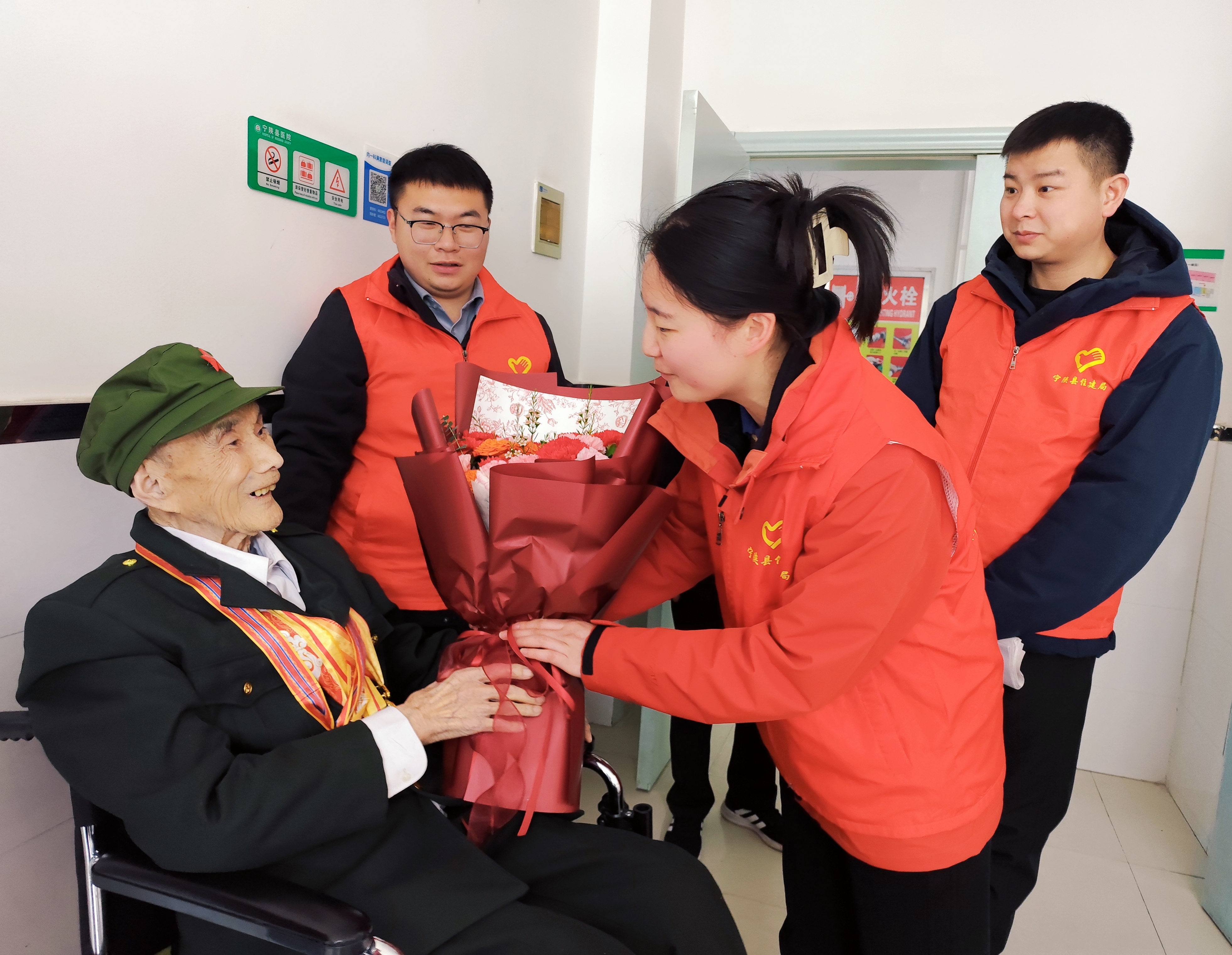 “1951年赴朝時,我們踩著沒過膝蓋的積雪行軍,餓了啃凍硬的干糧,縱使槍林彈雨,也沒人后退一步?!?01歲的周觀連老人坐在輪椅上,指尖撫過胸前的紀念章,緩緩向志愿者講述烽火歲月里的崢嶸往事。