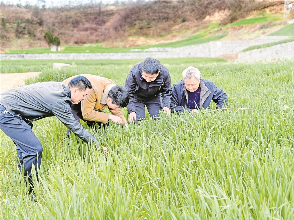 △ 2月24日,漢濱區(qū)農(nóng)業(yè)農(nóng)村局聯(lián)合國家統(tǒng)計局安康調(diào)查隊、區(qū)統(tǒng)計局,在五里鎮(zhèn)陳家營村,開展小麥苗情、墑情、蟲情“三情”調(diào)查及春季田間管理技術(shù)指導。