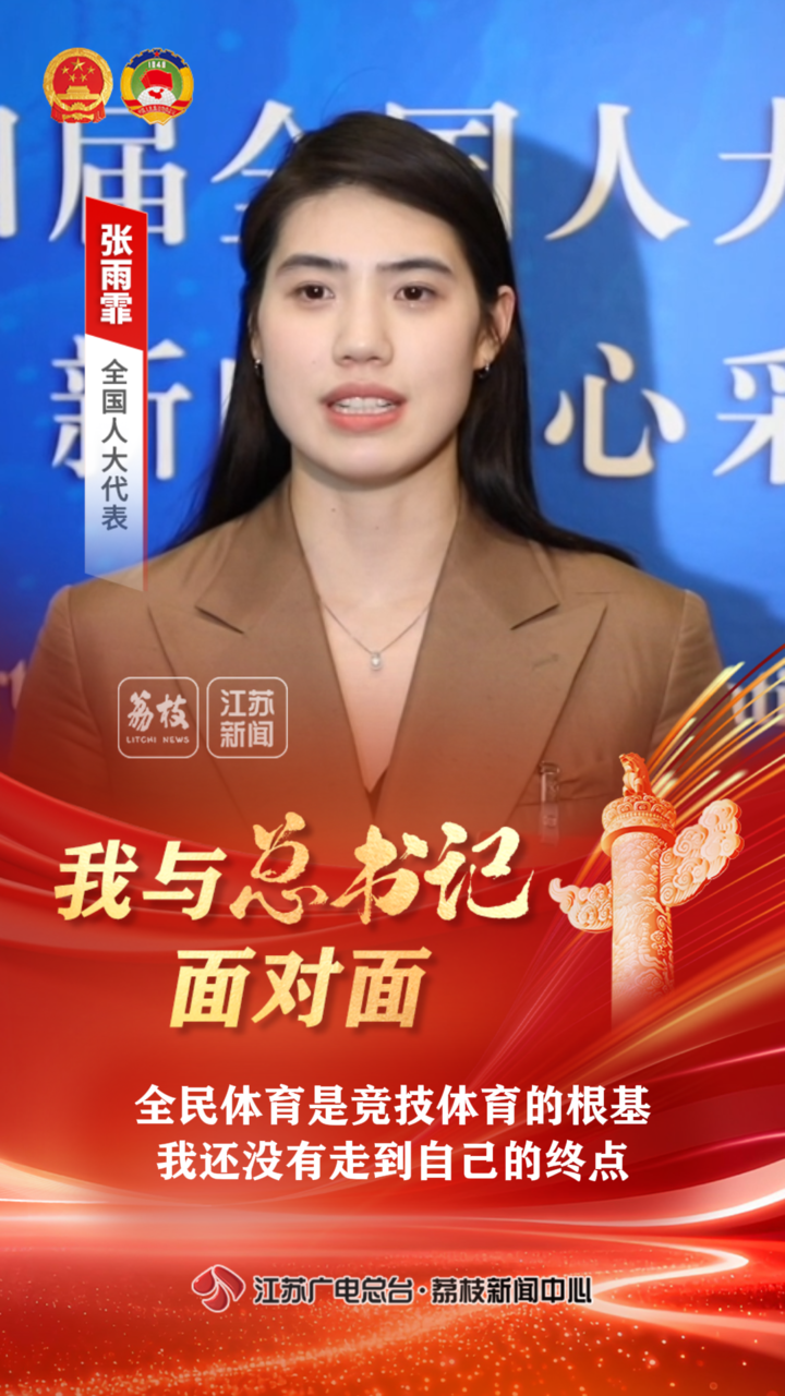南京體育學(xué)院游泳隊運動員、游泳學(xué)院副院長張雨霏代表,向總書記匯報了“蘇超”等大眾體育對競技體育的促進作用,她自己參加奧運的“戰(zhàn)績”和對未來征戰(zhàn)賽場的目標(biāo)和規(guī)劃。