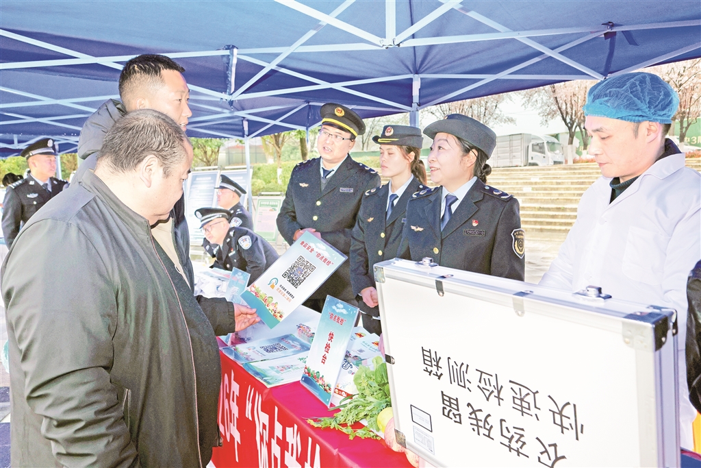 3月14日,在2026年陜西省“3·15”國際消費者權益日主題活動暨安康市“3·15”集中宣傳活動中,市場監(jiān)管執(zhí)法人員正在宣傳講解農殘監(jiān)測。