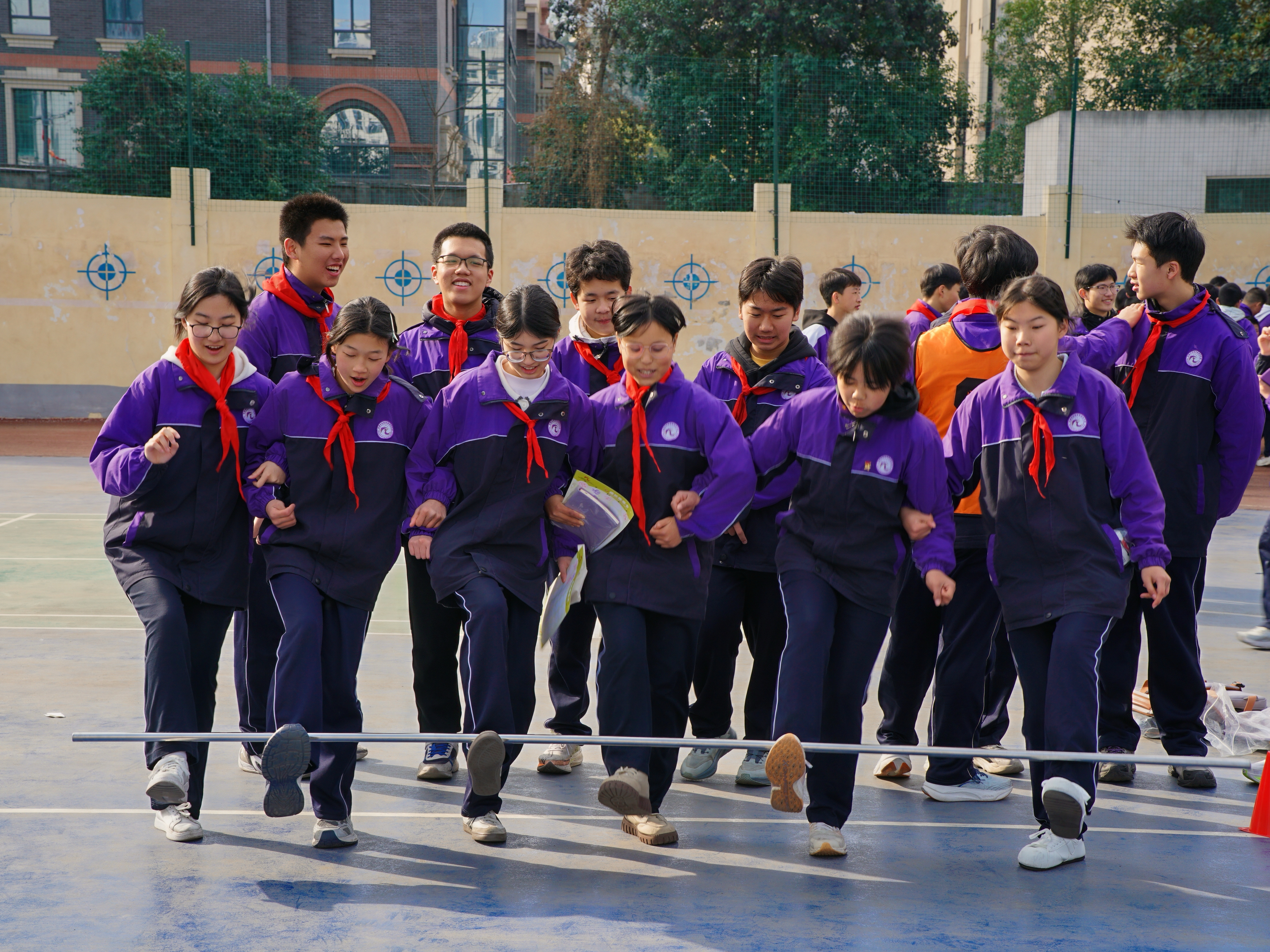 △ 安康中學(xué)教育集團(tuán)初中部游園會活動中,學(xué)生們參加協(xié)作跳躍項目。馬黎明 攝