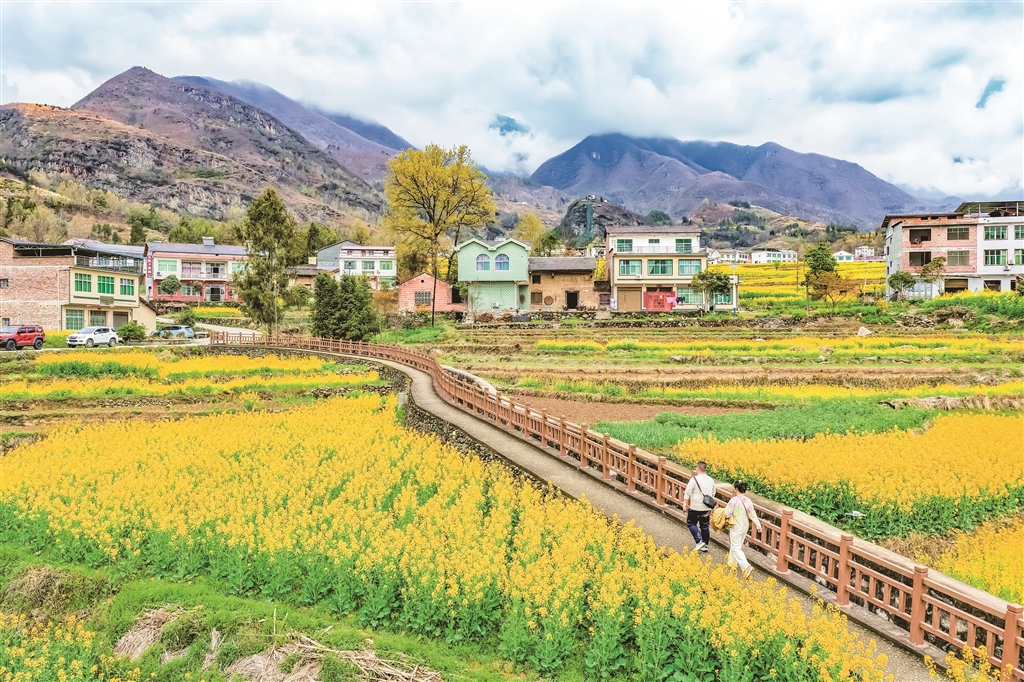 3月18日,游人漫步花田,邂逅漢陰山鄉(xiāng)好時光。 張忠 攝