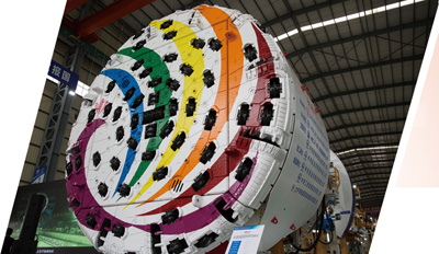 我國(guó)自主研制的、在昆明組裝的國(guó)內(nèi)最大直徑硬巖掘進(jìn)機(jī)“彩云號(hào)”,以白色刀盤(pán)為底,用橙、黃、藍(lán)、綠、紫五色繪出一幅孔雀圖案。 |