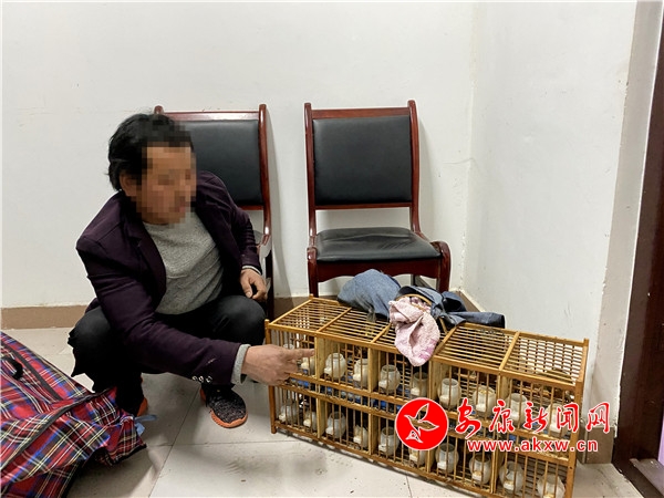 據了解,1月16日晚上21時30分許,民警馬玉壽在鎮(zhèn)安車站候車室執(zhí)勤時,接到安檢員反饋,一男性旅客攜帶物品疑似有活體鳥類。民警對該男子行李檢查后發(fā)現,其包內所裝有9只畫眉鳥活體,民警遂將該男子帶回辦案區(qū)進行調查。