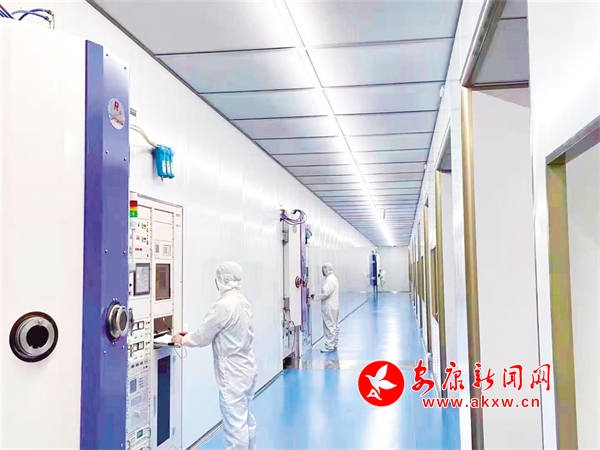 陜西軒意光電科技有限公司工作人員巡查生產(chǎn)情況。DQT安康新聞網(wǎng)