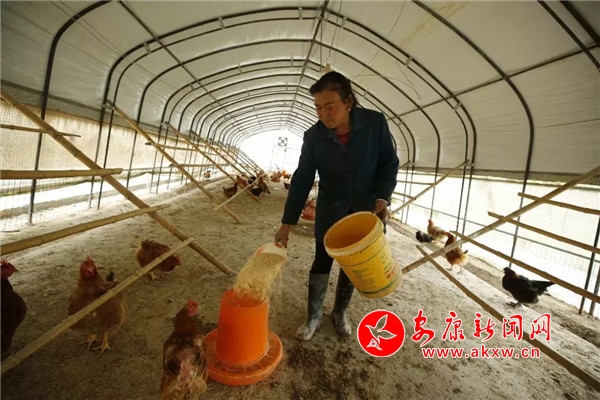 騰靜是我社的一名資深校對,2017年初她帶著精準(zhǔn)扶貧的艱巨任務(wù),來到了貧困戶劉合英家。幾年前劉合英丈夫因病去逝,留下三個上學(xué)的孩子和治療欠下的外債。騰靜了解情況后,首先爭取到國家針對貧困戶生的助學(xué)款,然后幫助劉合英參加了國家扶貧搬遷免費交鑰匙工程。之后,在村干部的幫助下貸了款,建了雞舍和豬圈,買了30只雞和兩頭豬仔。