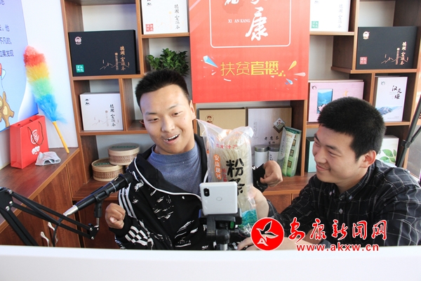 4月15日下午,記者一行來到漢濱區(qū)互聯(lián)網(wǎng)產(chǎn)業(yè)園時(shí),殘疾青年孫陽正在映客直播平臺用詼諧幽默的語言和粉絲互動,介紹著蜂蜜、粉條等農(nóng)產(chǎn)品的優(yōu)勢。不久后,手機(jī)那頭的網(wǎng)友們紛紛下單,僅僅幾個(gè)小時(shí)成交了數(shù)單生意。