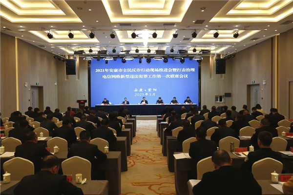 市委常委、政法委書記王安中出席會議并講話,副市長、市委政法委副書記、市公安局黨委書記、局長張維護(hù)主持會議,會議通報了2020年以來全市打擊治理電信網(wǎng)絡(luò)新型違法犯罪工作情況,全面部署了全市無詐村(社區(qū))、單位、鎮(zhèn)(辦)創(chuàng)建活動暨全民反詐行動;市委平安辦和市聯(lián)席辦成員單位主要負(fù)責(zé)同志;紫陽縣人大、縣政府主要領(lǐng)導(dǎo);各縣區(qū)政法委書記、分管副書記;市公安局分管局領(lǐng)導(dǎo);各縣區(qū)公安局長、分管局領(lǐng)導(dǎo)共100余人參加會議。