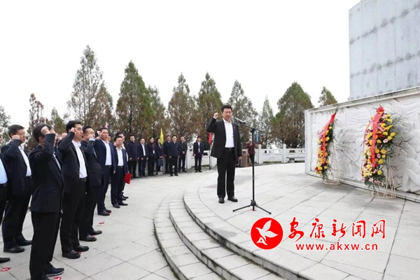 牛蹄嶺戰(zhàn)役遺址是全市愛國主義教育基地,中國人民解放軍第十九軍在此打響的牛蹄嶺戰(zhàn)役為解放安康乃至陜南作出了重要貢獻(xiàn)。春日的牛蹄嶺蒼勁翠郁、豐碑聳立。上午9時(shí)許,市委常委班子成員拾階而上來到牛蹄嶺戰(zhàn)役紀(jì)念碑廣場,向在戰(zhàn)役中英勇犧牲的革命烈士默哀并敬獻(xiàn)花籃,表達(dá)緬懷之情。面對(duì)黨旗,大家重溫入黨誓詞,鏗鏘的宣誓聲響徹牛蹄嶺、回蕩山谷間。隨后,大家認(rèn)真聆聽激戰(zhàn)牛蹄嶺的紅色歷史,瞻仰牛蹄嶺戰(zhàn)役紀(jì)念碑,追憶革命先輩英勇無畏、舍生取義的崢嶸歲月。