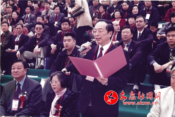2002年,第三屆安康龍舟節(jié)上,時任全國人大常委會副委員長蔣正華宣布龍舟節(jié)開幕。 肖利英 攝
